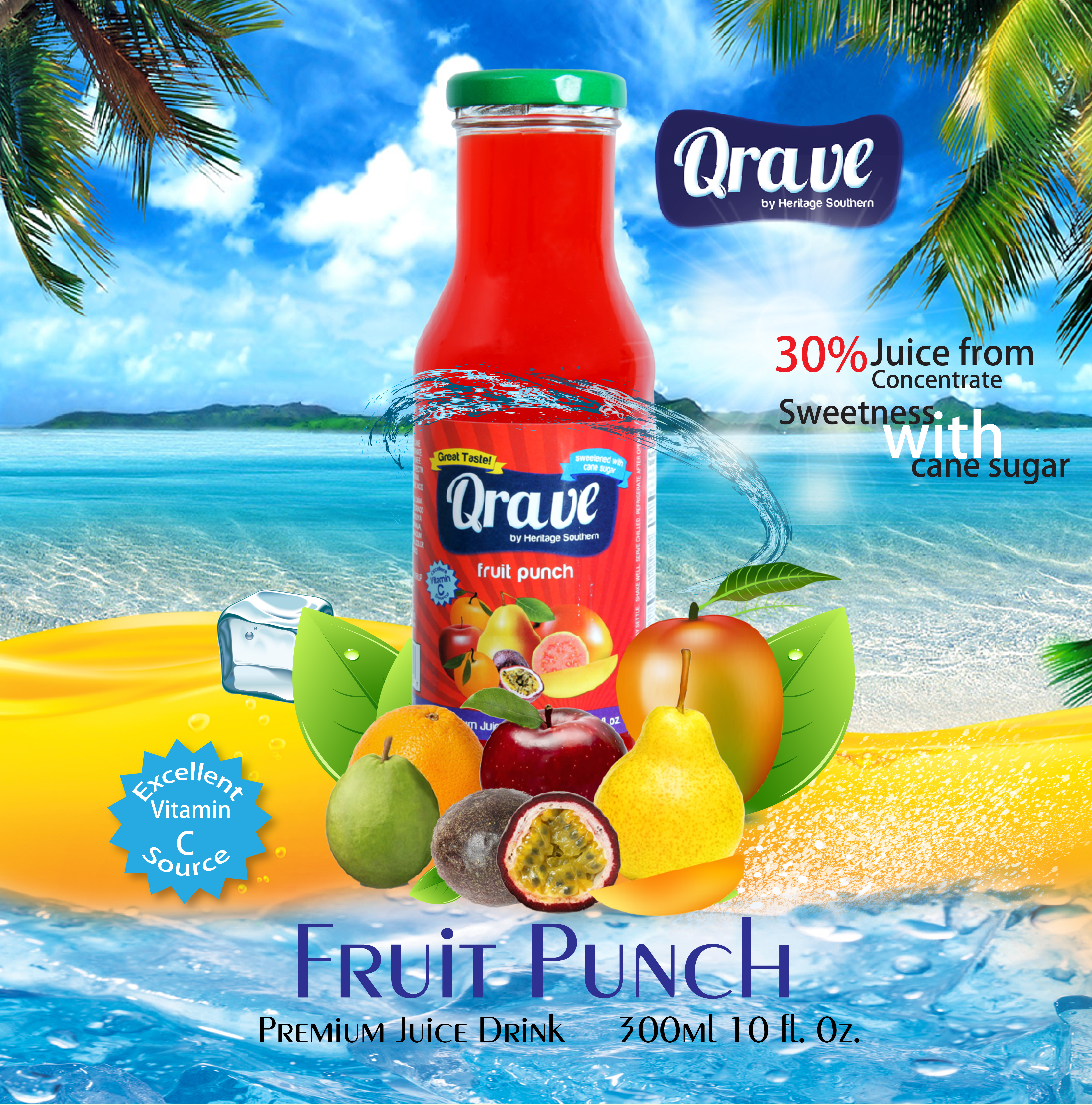 Qrave’s Fruit Punch is a delightful bold blend of apple, pear, guava, mango, passion fruit, and orange with all of the immune boosting power of the combined fruits. This punch really does taste like fruit, and without the preservative aftertaste in many similar drinks on the market today.