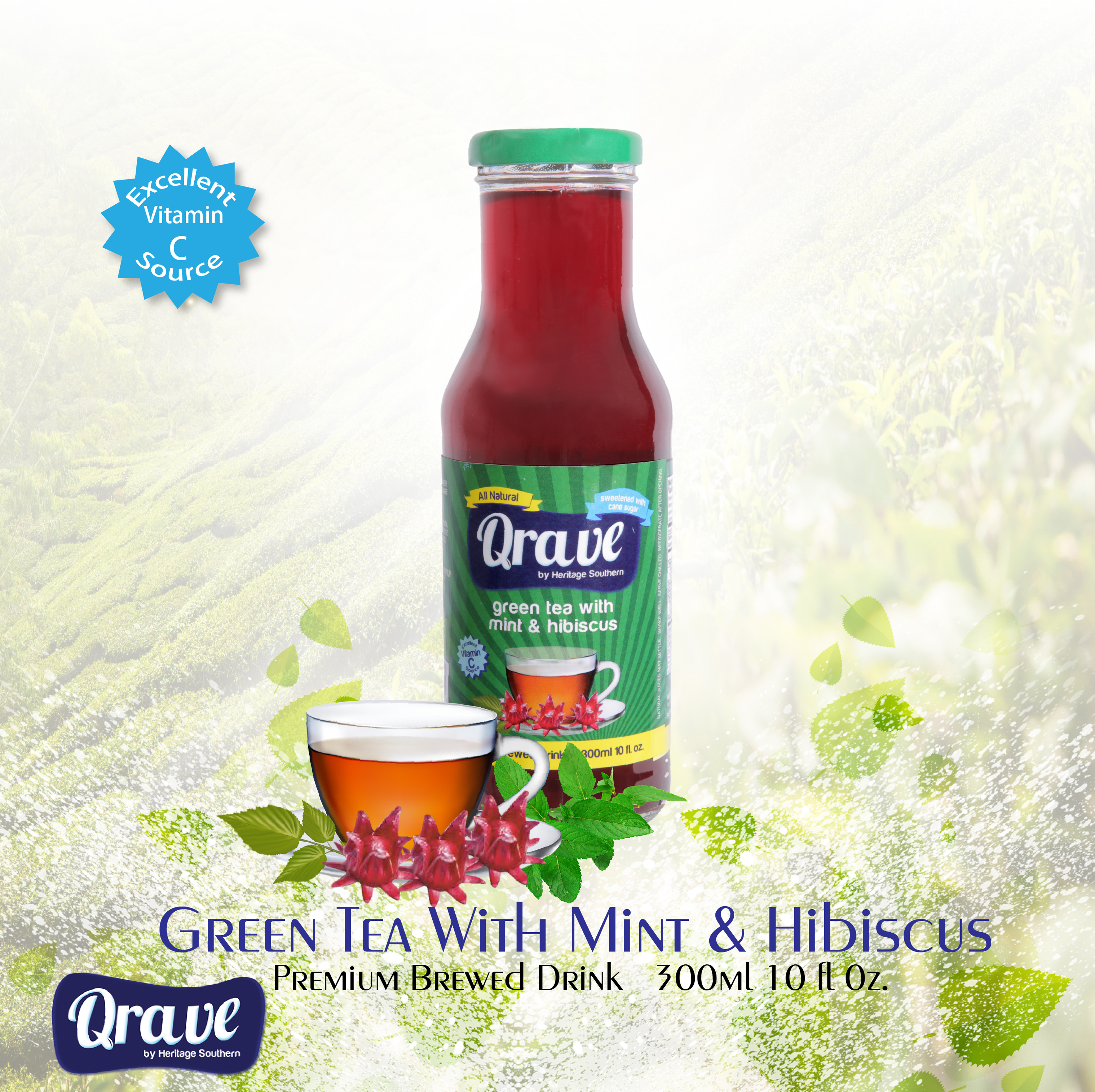 Green Tea with Mint and Hibiscus is a refreshing antioxidant rich green tea, infused with a hint of cool mint and the calming sweetness hibiscus. This beverage can be served warm or cold. Some consumers have remarked that the drink has a unique taste is soothing and medicinal.